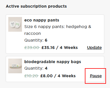 Yes, you can! You’ve got the flexibility to pause and restart your nappy or wipes subscription, whenever you like. So if you’ve got plenty of extra nappies or wipes, you can hit pause - then bring them back when you need them.