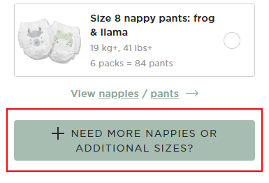 Simply to the ‘Need more nappies or additional sizes?’ section when updating your existing subscription, and choose the sizes and amount you need.